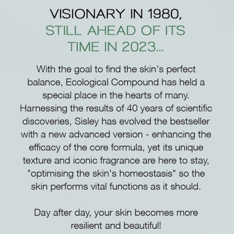 總而言之,Sisley生態複合先進配方是一種護膚產品,為皮膚提供滋潤、活化和保護,促進更有活力和健康的膚色。